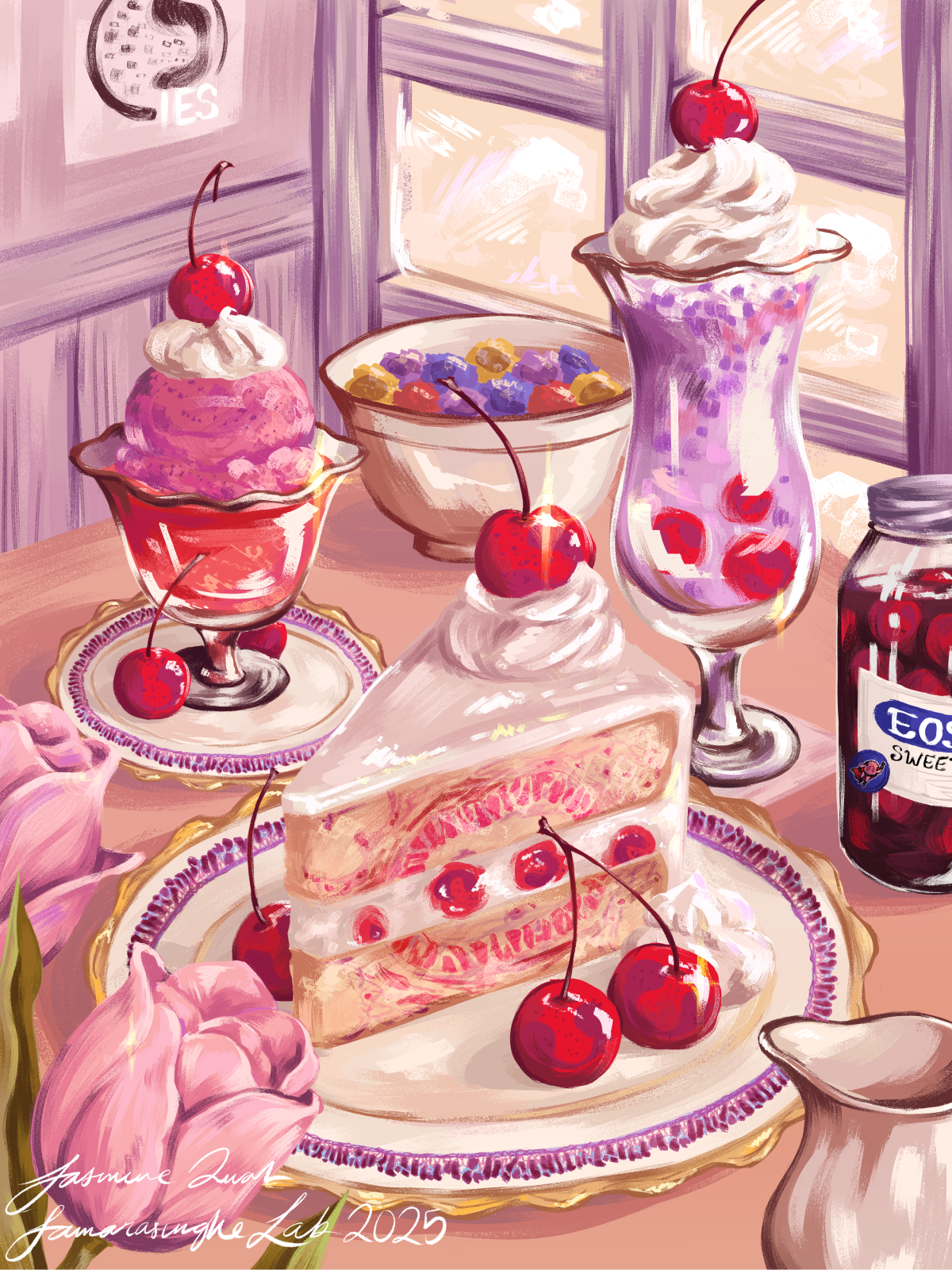 Graduate student Jasmine Quah showcased her original artwork, “The ‘Cherry’ on Top,” at the 13th Biennial International Eosinophil Society (IES) Congress, held July 7–11, 2025, in Montpellier, France. Her piece, submitted to the IES “Eosinophil Art Contest,” creatively reimagines eosinophils, epithelial cells, and other immune cells as elements of a vibrant